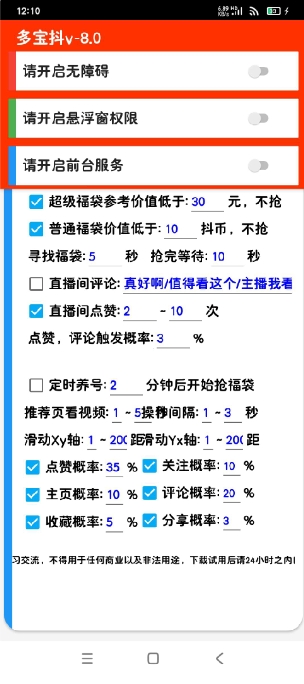 自动秒抢红包,福袋。