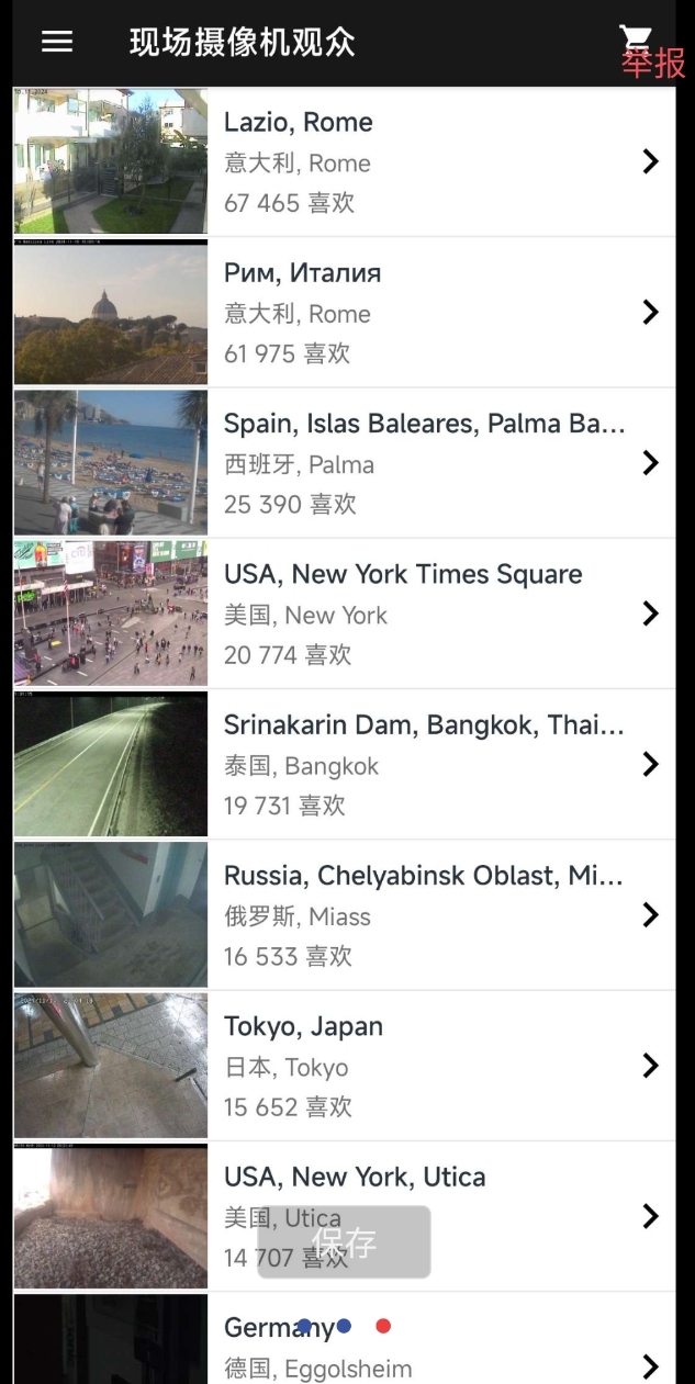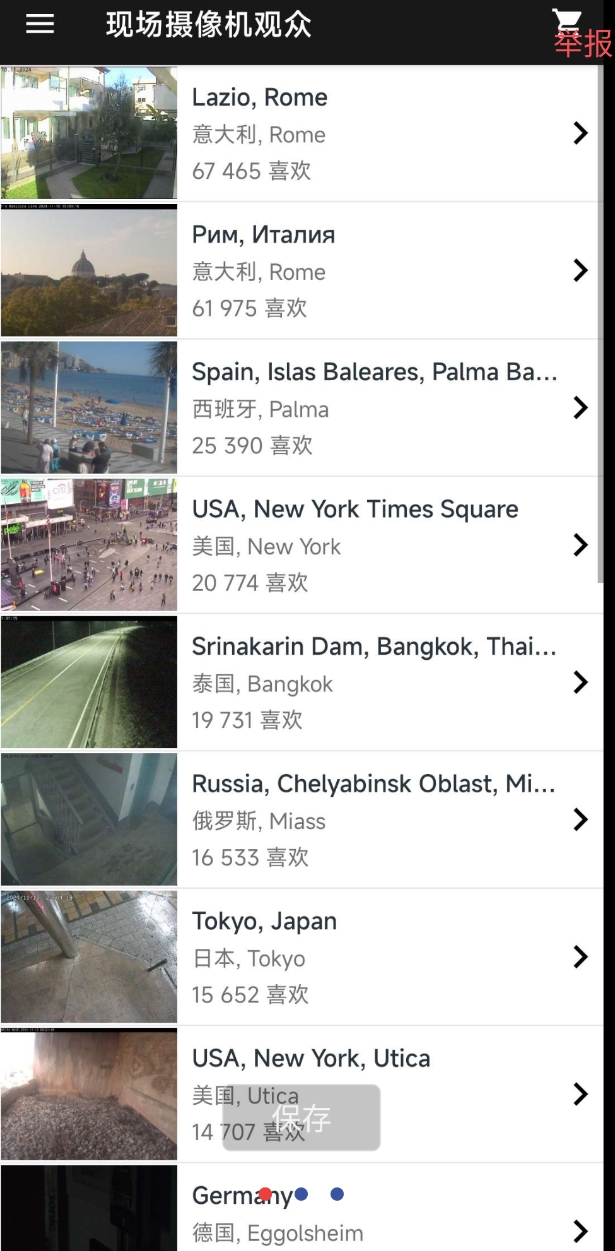 一个全球的监控查看器,可以看到国外的风景简约流畅,界面干净