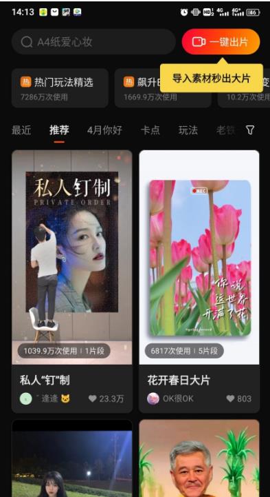 可以随意的剪辑自己的素材而且可以免费套用模板