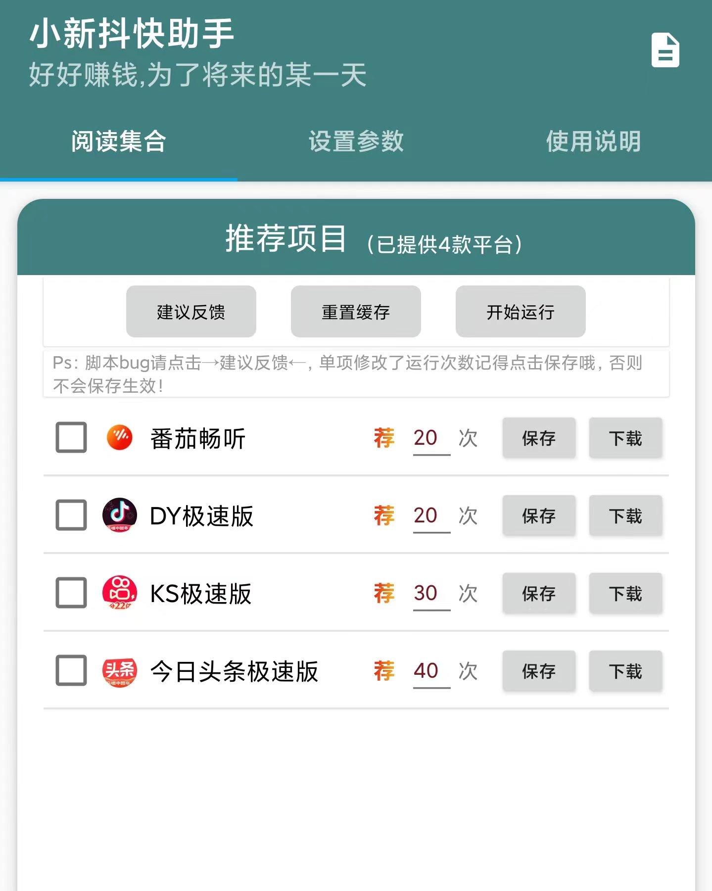 【番茄头条抖音快手】四平台全自动撸金币刷零花神器【安卓免卡密】