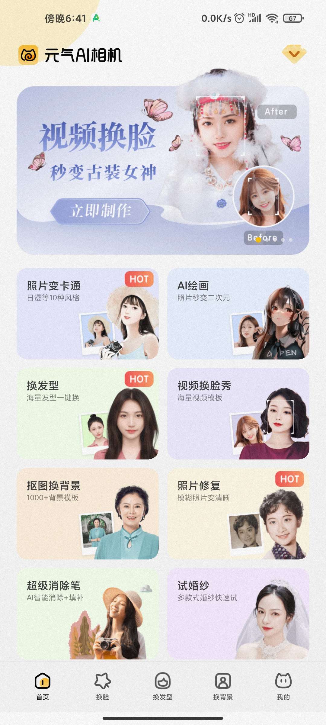 【应用介绍】元气AI相机是基于AI算法的智能图像处理APP,可帮助你修复老照片破损,智能上色并大幅提升照片清晰度;可一键分析脸型,实现换卡通脸、3D动漫脸异性脸、预测童年照、老年照等多种高级图片效果。