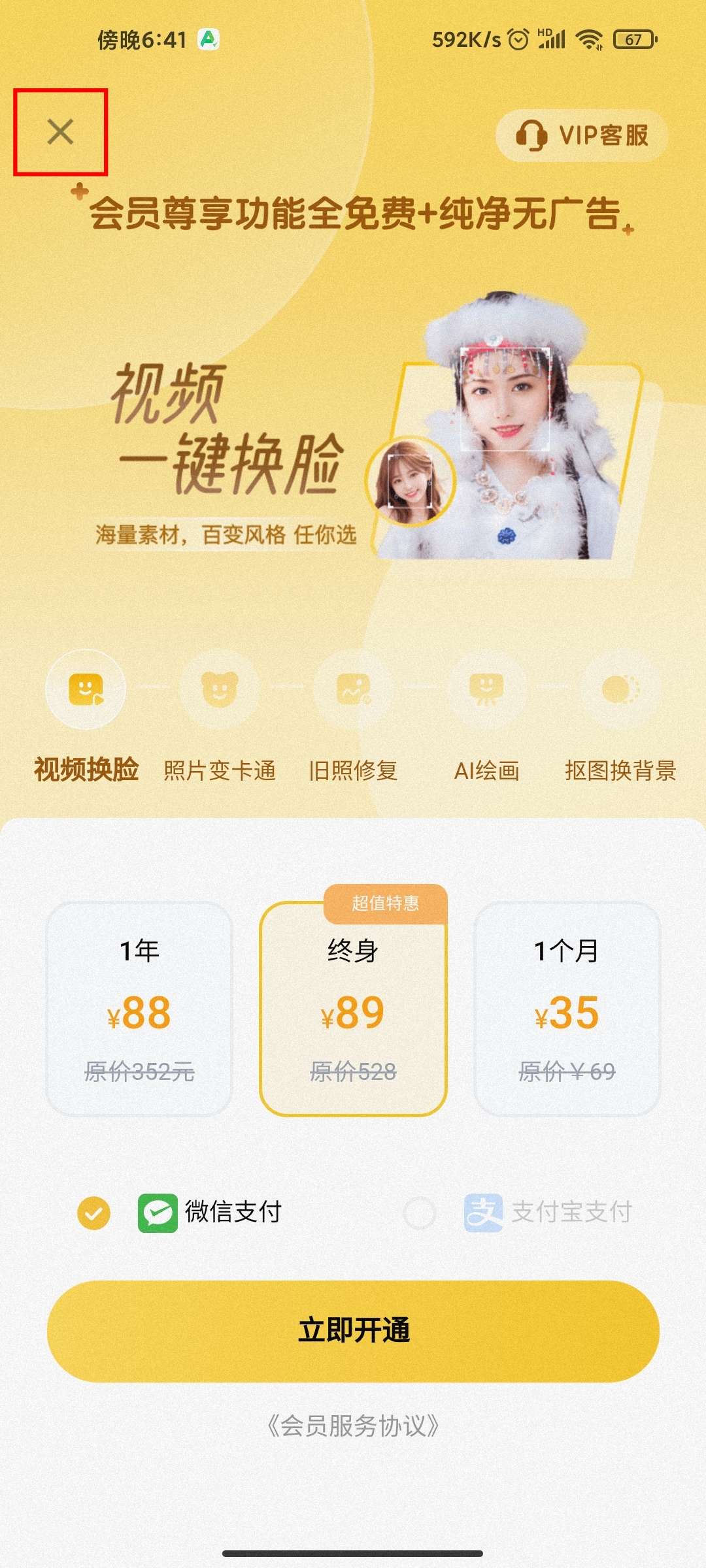 【特殊说明】解锁会员(进去的时候点左上角的X即可)