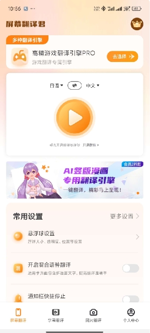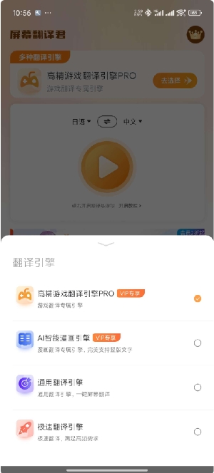 屏幕翻译君是一款屏幕实时翻译APP,支持翻译游戏界面、聊天内容、日韩漫画、国外新闻、海外APP界面、照片翻译等。支持将76种语言的屏幕文字(包括英文、中文、日文、韩文等)翻译成全球100多种语言。