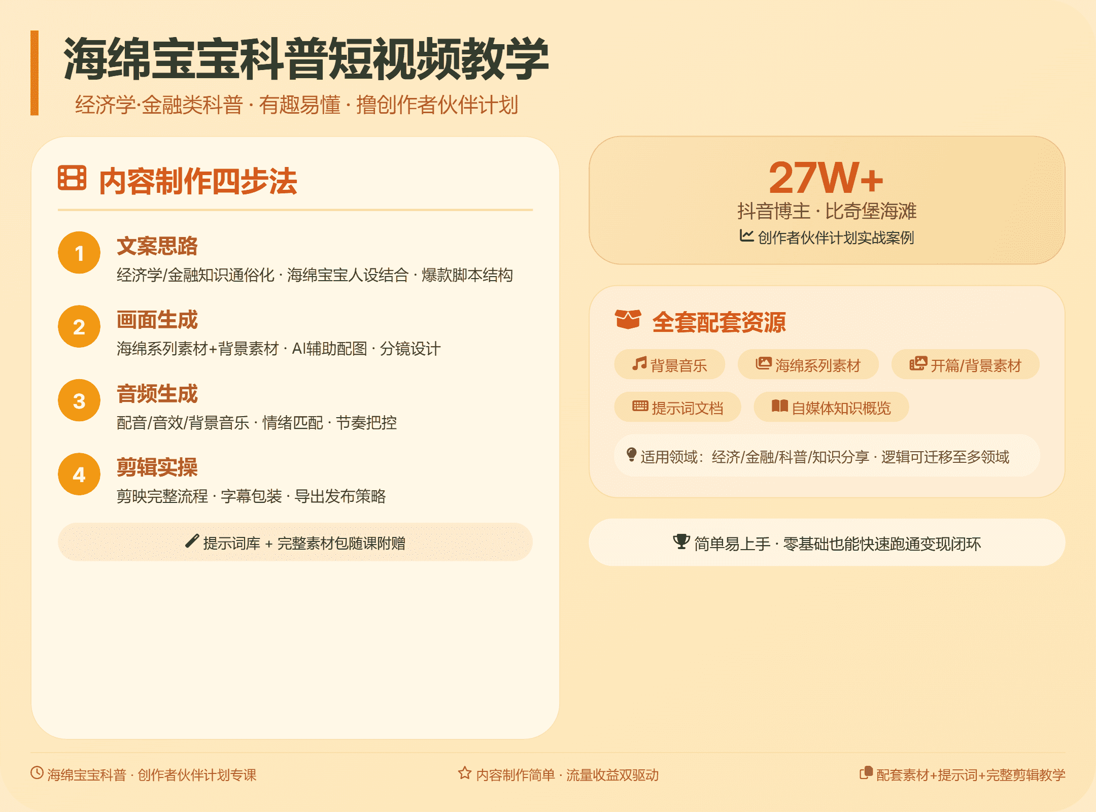 海绵宝宝科普短视频教学,经济学、金融类,也适合其他领域,内容有趣,通俗易懂