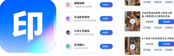 支持:快手,抖音,小红书,哔哩哔哩,皮皮虾,等多款应用去水印,支持图集解析批量下载【应用名称】:解印