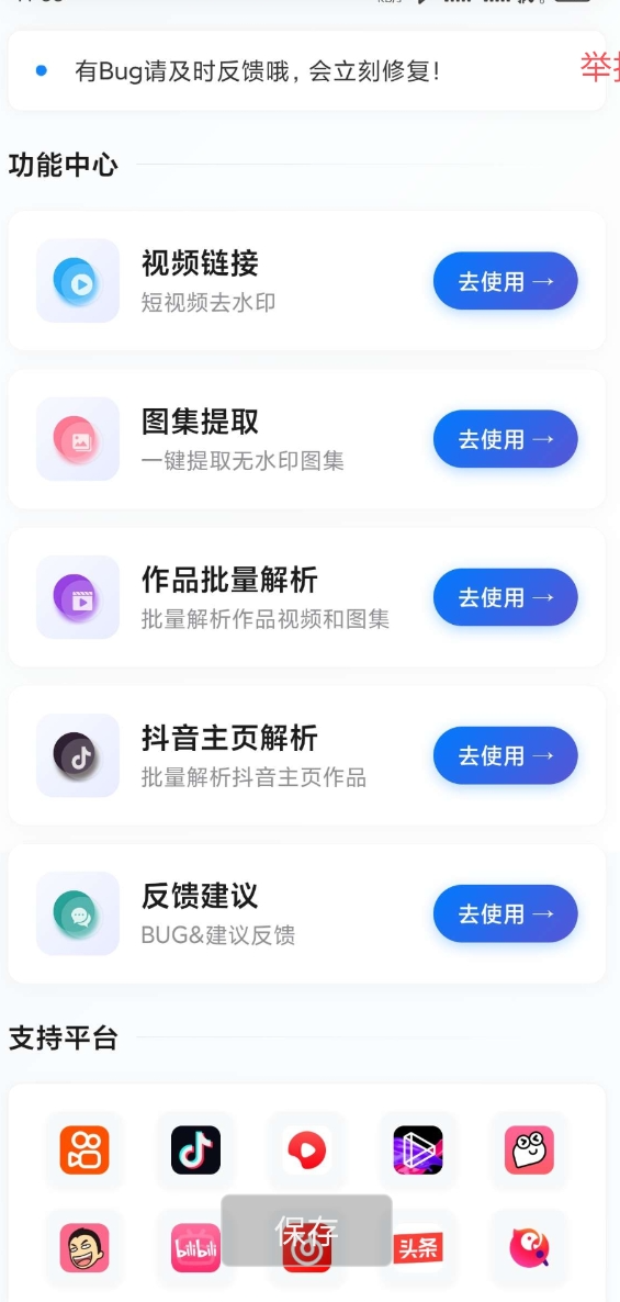 支持:快手,抖音,小红书,哔哩哔哩,皮皮虾,等多款应用去水印,支持图集解析批量下载【应用名称】:解印