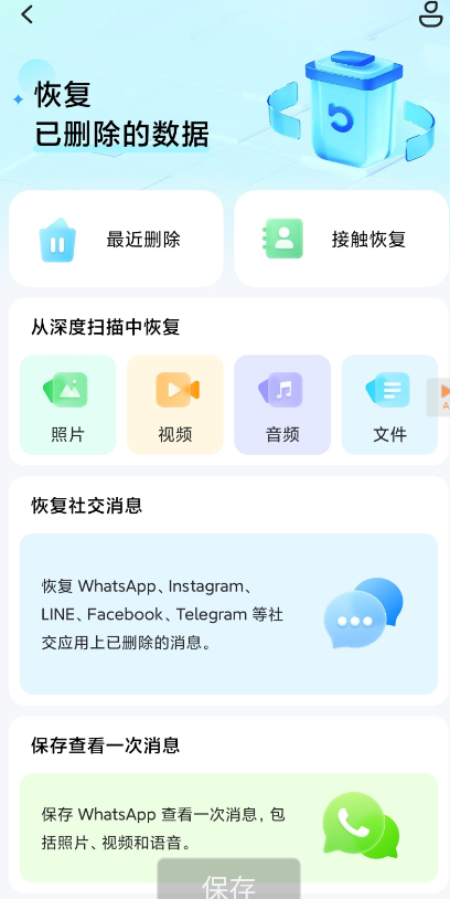 另一个与上述功能同样强大的功能是恢复您删除的数据。它结合了扫描功能,可以查找哪些数据仍可恢复,并为你整理一份清单。你的工作是选择哪些内容是必要且可以继续使用,比如视频,其他内容也会被理解为要继续被删除。同时,随着时间推移,这些功能不仅兼容媒体文件,还能兼容重要文档文件,这些文件也可能获得支持。